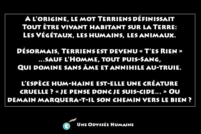 « Je pense donc je suis-cide. » « Tu es ou tué, terrien ou t’es rien »