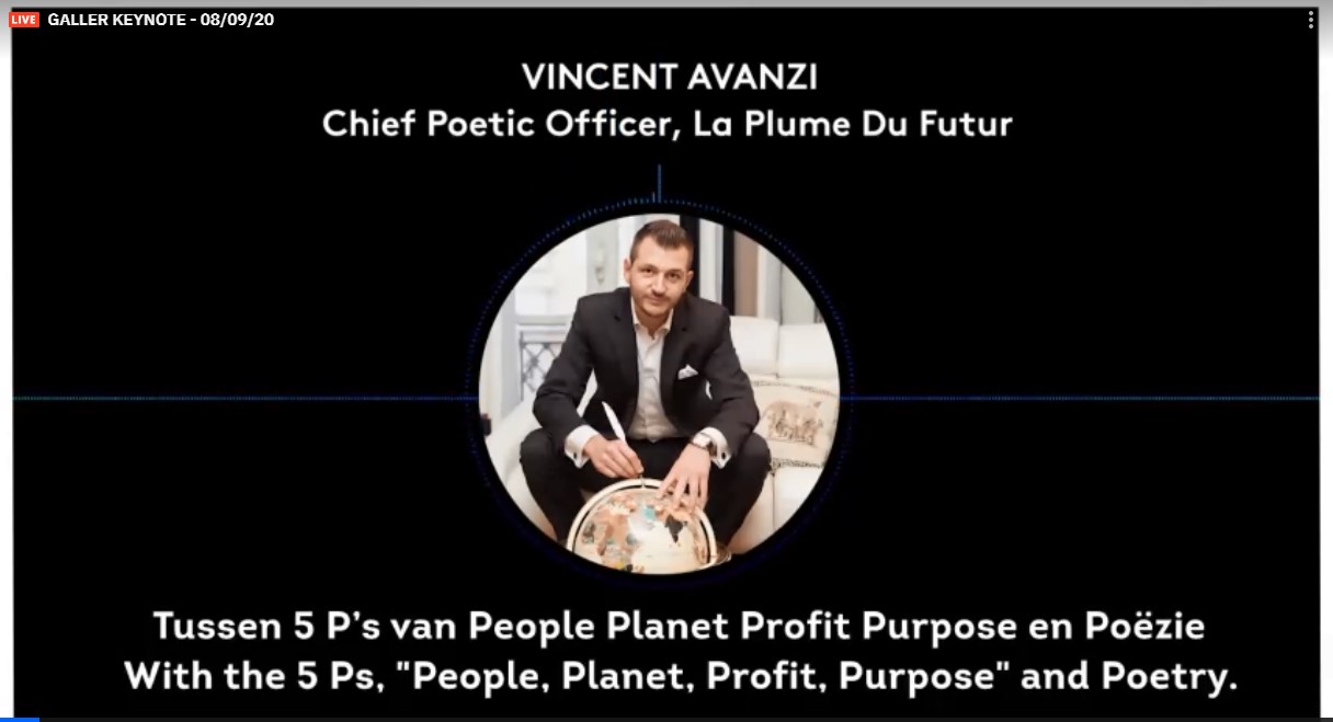 Watch the Chocolaterie Galler Press Conference to present their new « Raison d’Etre » 🌍🍫💛 in a digital keynote format with guests Pierre Rabhi, Vincent Avanzi and Romeo Elvis. It is always an honor and a pleasure to collaborate with, support and contribute to companies who dare to shift their core business model, in order to be genuinely aligned with their human values and more sustainable with the 5Ps of lasting Prosperity (People Planet Purpose Profit Poetry), all this towards a « better normal » ! Congrats to all the teams inside driving the radical change and hands up to their visionary enlightening CEO Salvatore Iannello. More info about Chocolaterie Galler. Below, the transcript in french and english of the poetic digital keynote. Also, listen to the audio version and more on a « Chief Poetic Officer’s Delight » album.