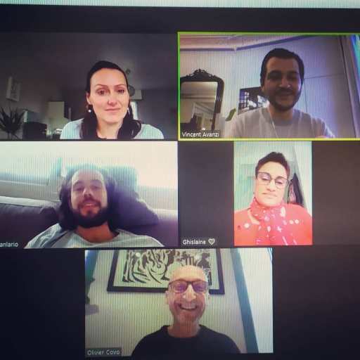(Sur la photo : Eve, Vincent, Florian, Missy Terre, Olivier)