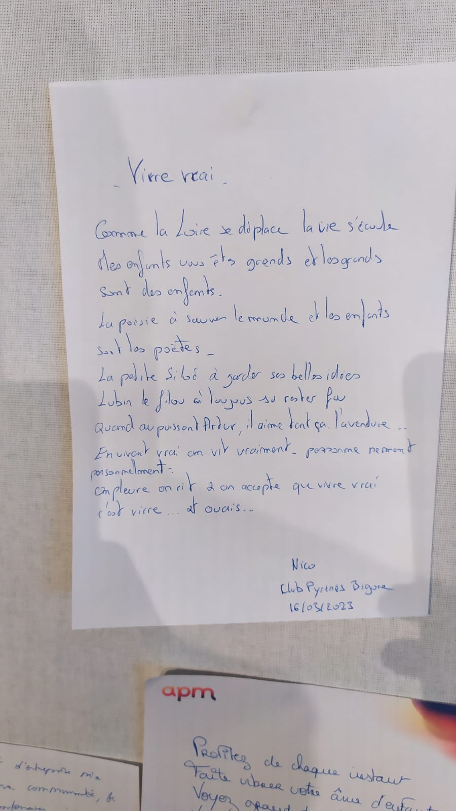 Très belle Journée Mondiale de la Poésie en ce 21 Mars 2023. Un grand merci à tous les participants pour leur confiance poétique et leur ouverture de coeur. Remerciements spéciaux à Denis Cristol et Margot Comina Fersini de l’APM pour l’invitation et l’orchestration ainsi que toute l’équipe organisatrice, sans oublier Morgane et Shona pour leur accompagnement lors des ateliers.