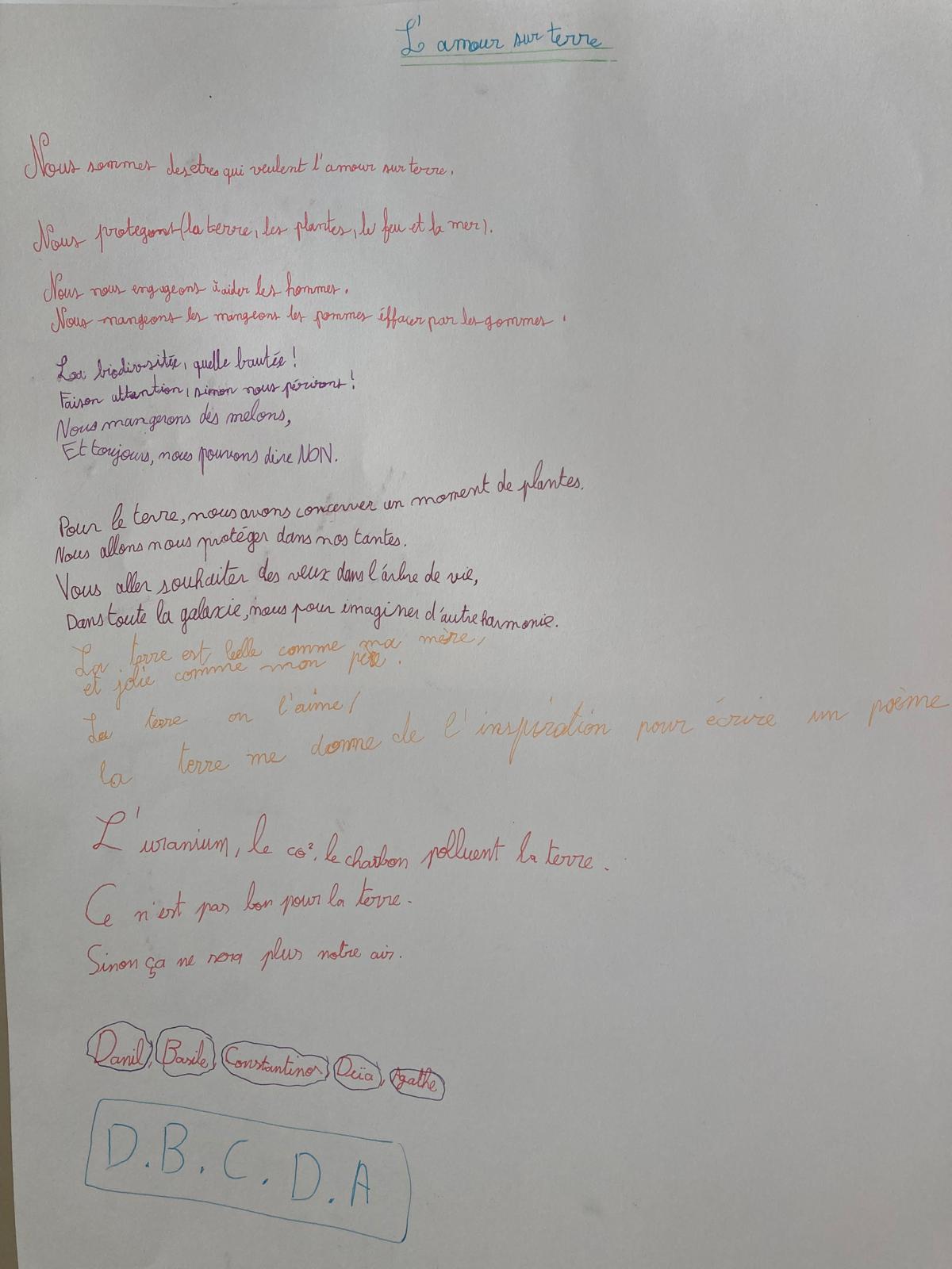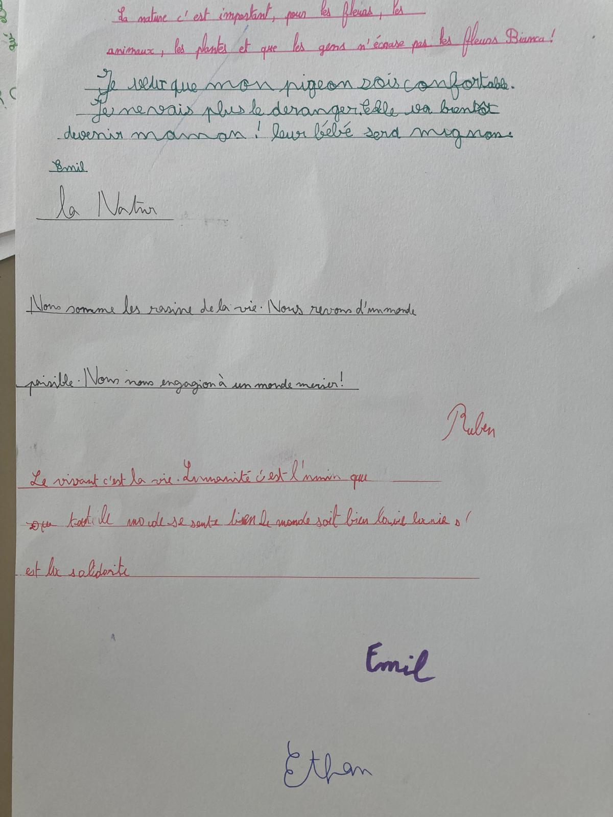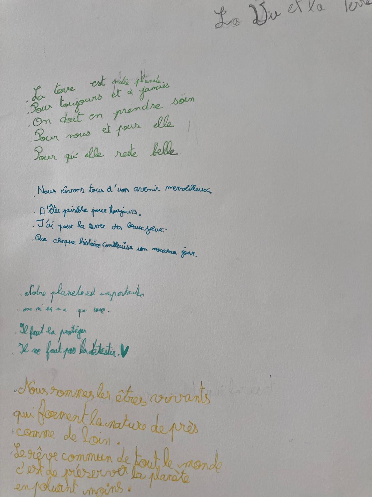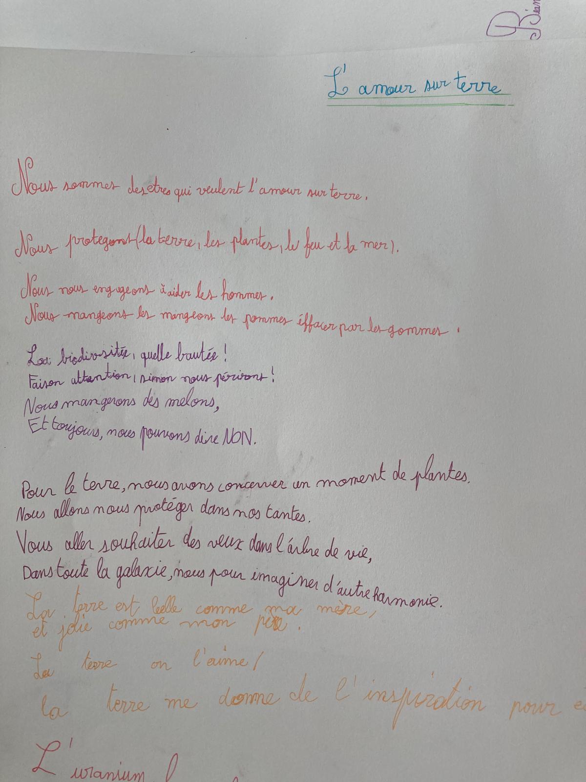 Quelque soit le résultat conjoncturel des élections 2024, focalisons-nous sur nos missions de vie, sur le temps long, sur le cap à l’horizon. Moi, c’est ma part dans la poétisation du monde, le combat continue et continuera. Ici, dans une classe d’école primaire, ce vendredi, avec des élèves où je leur ai demandé d’écrire, non pas une nouvelle Déclaration d’Indépendance, mais une « Déclaration d’Interdépendance avec le Vivant », en groupe, en poésie et en dessin. Quelle fluidité dans leur intelligence collective, quelles sublimes œuvres d’art collectives de coécriture de notre avenir et quels engagements pour prendre soin du vivant demain, chacun avec ce qu’il a et ce qu’il est, dans sa singularité au service de l’Humanité et surtout dans cet appel inné à contribuer au bien commun et la biodiversité pour la Vie. Le temps des poètes arrive. Ne nous laissons pas distraire. L’harmonie est en chemin. Cap vers de meilleurs lents demains. Coécrivons ensemble la partition de notre futur rêvé pour réaliser notre grand dessein. 💛