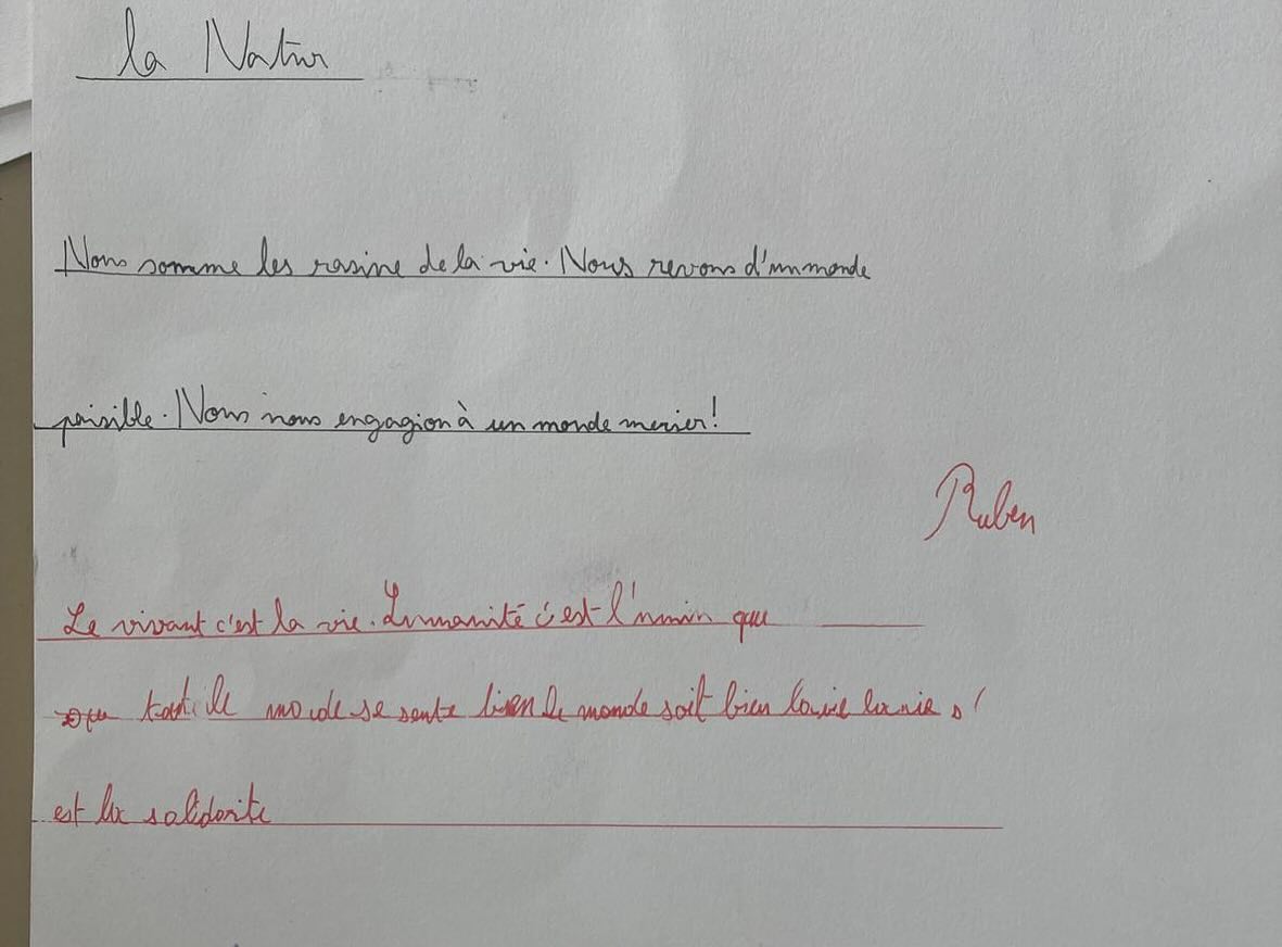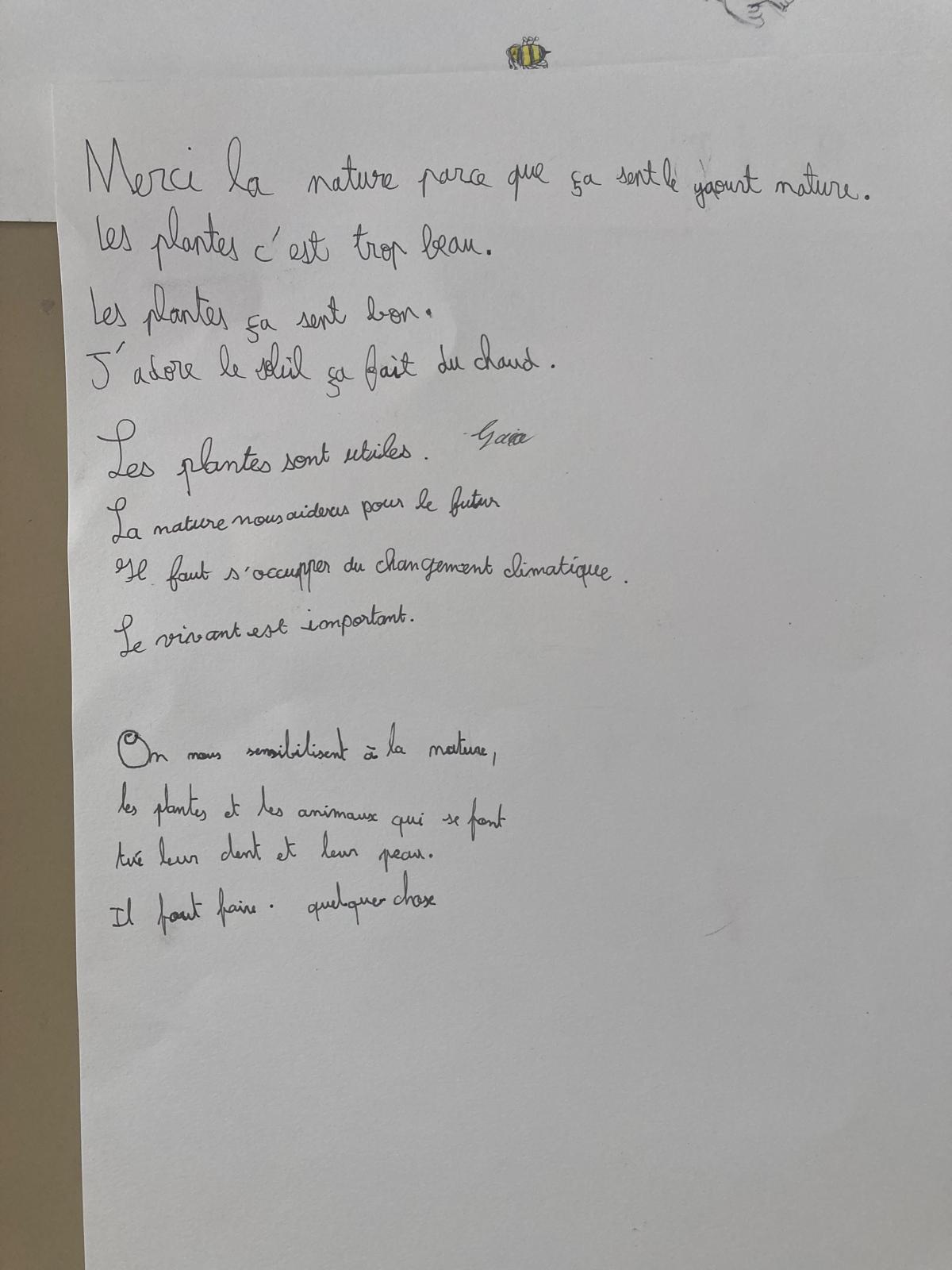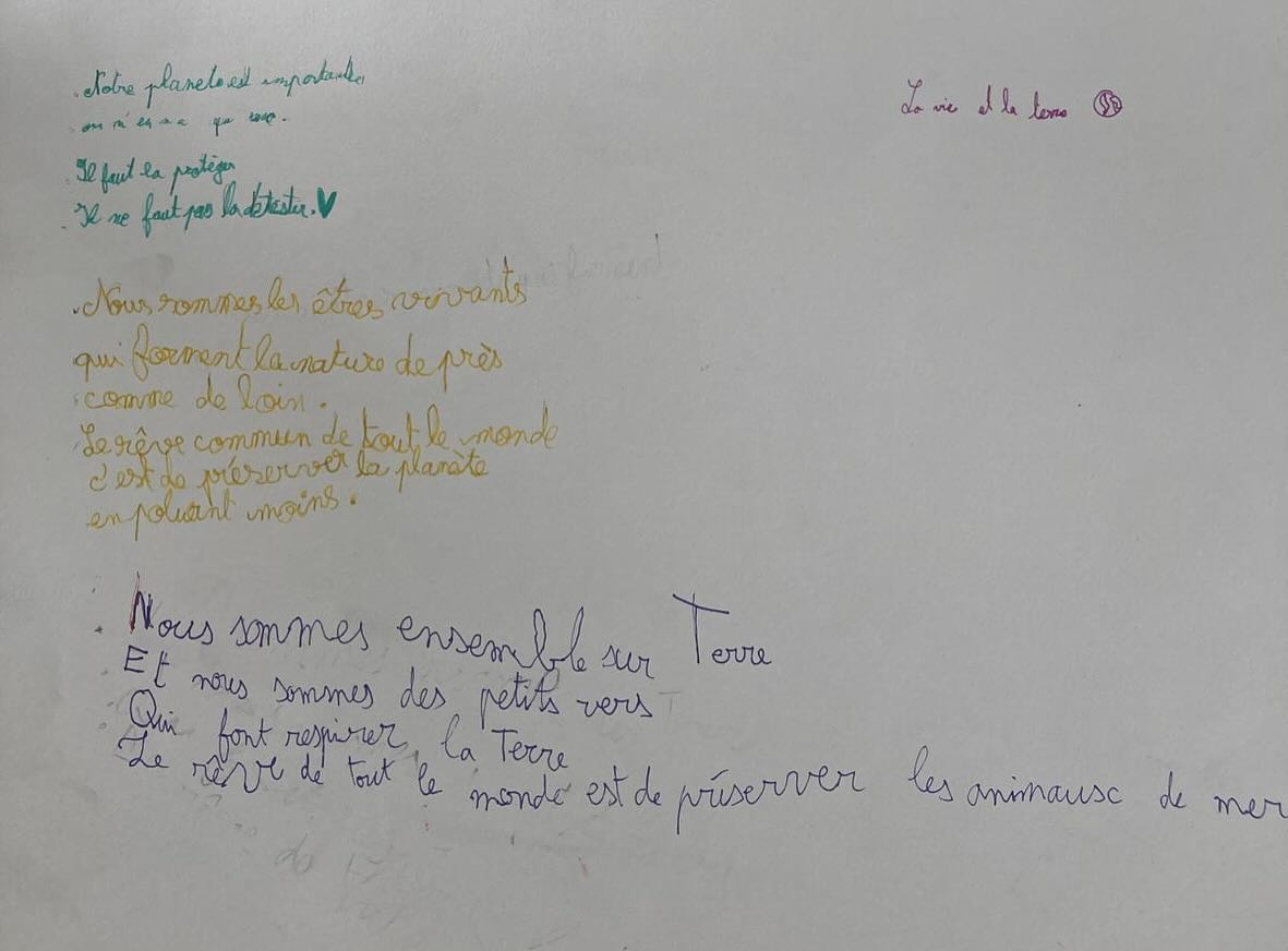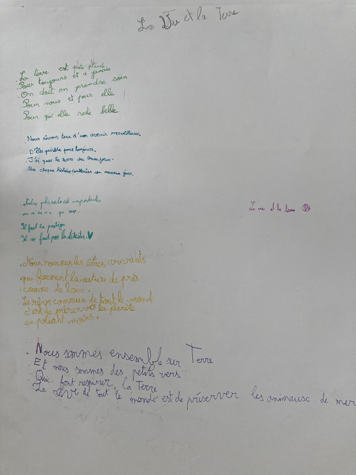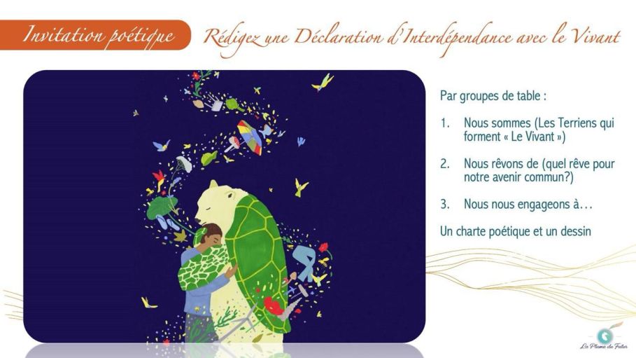 Quelque soit le résultat conjoncturel des élections 2024, focalisons-nous sur nos missions de vie, sur le temps long, sur le cap à l’horizon. Moi, c’est ma part dans la poétisation du monde, le combat continue et continuera. Ici, dans une classe d’école primaire, ce vendredi, avec des élèves où je leur ai demandé d’écrire, non pas une nouvelle Déclaration d’Indépendance, mais une « Déclaration d’Interdépendance avec le Vivant », en groupe, en poésie et en dessin. Quelle fluidité dans leur intelligence collective, quelles sublimes œuvres d’art collectives de coécriture de notre avenir et quels engagements pour prendre soin du vivant demain, chacun avec ce qu’il a et ce qu’il est, dans sa singularité au service de l’Humanité et surtout dans cet appel inné à contribuer au bien commun et la biodiversité pour la Vie. Le temps des poètes arrive. Ne nous laissons pas distraire. L’harmonie est en chemin. Cap vers de meilleurs lents demains. Coécrivons ensemble la partition de notre futur rêvé pour réaliser notre grand dessein. 💛